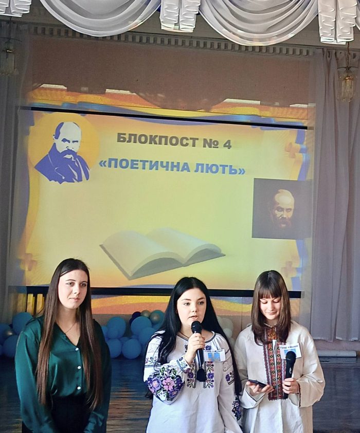 Три команди — «Голос Кобзаря», «Побратими» та «Оборонці» — долали вісім складних «блокпостів». Це було справжнє випробування на всебічний розвиток: окрім знань літературної спадщини та біографії Шевченка, школярі демонстрували математичні здібності, рівень володіння англійською мовою та навіть обізнаність у сучасній українській естраді.